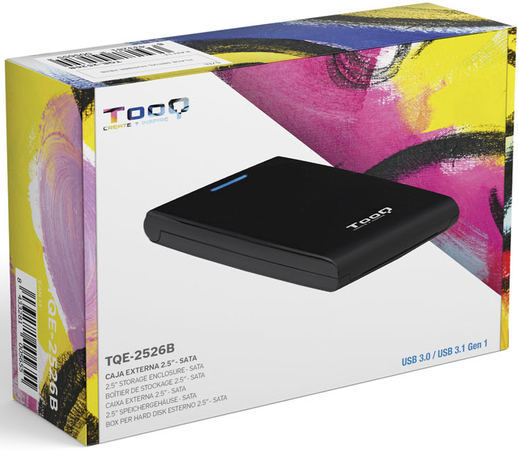 Caixa externa de alumínio para discos rígidos de 2.5″ SATA I, II e III até 12,5mm de espessura, ligeira e de instalação fácil sem parafusos. Com ligação através da porta USB 3.0, velocidade de transferência até 5.0Gbps. Incluí um LED indicador do estado de ligação e acesso ao disco. Fabricada em plástico ABS de alta resistência.